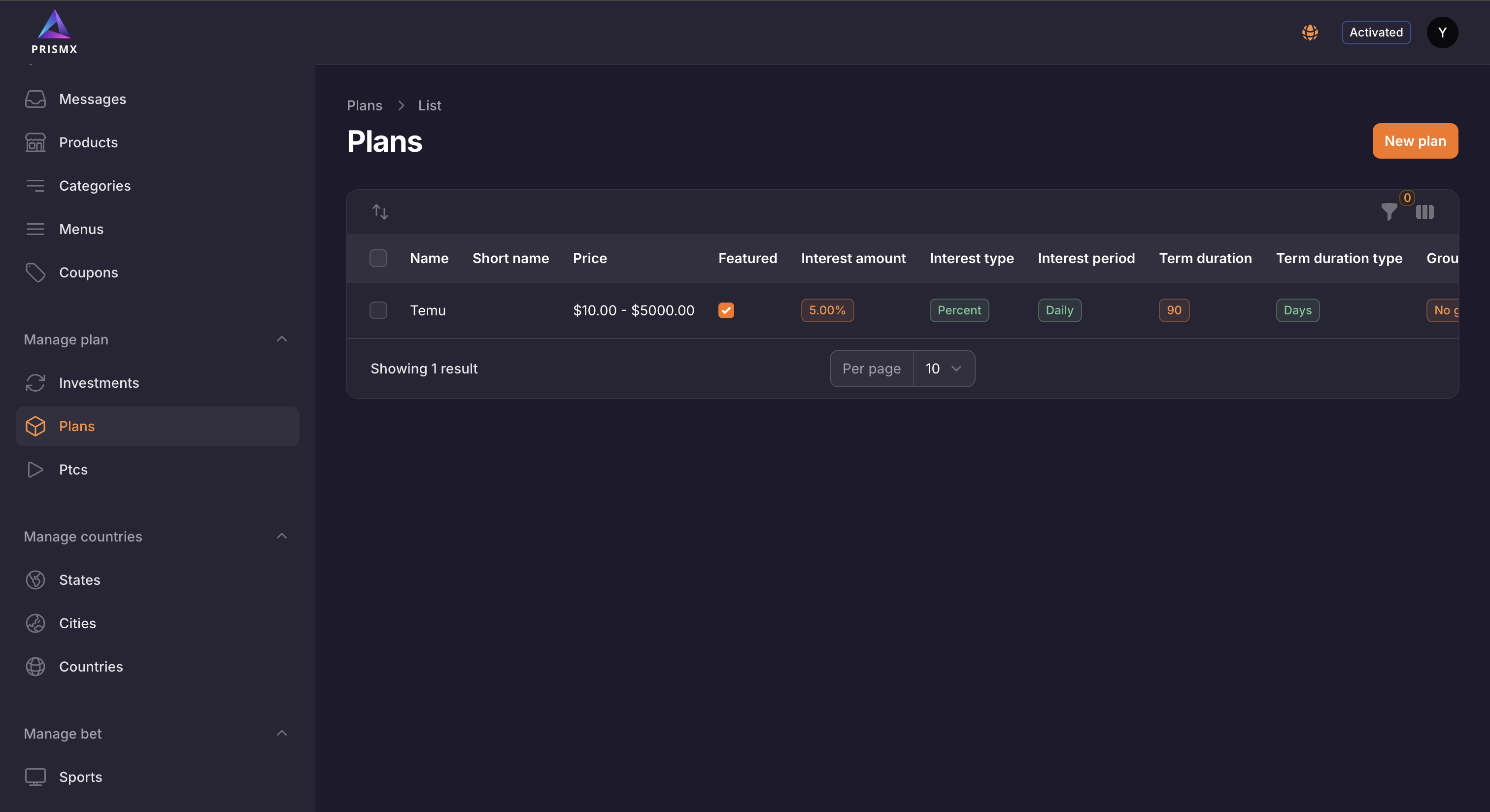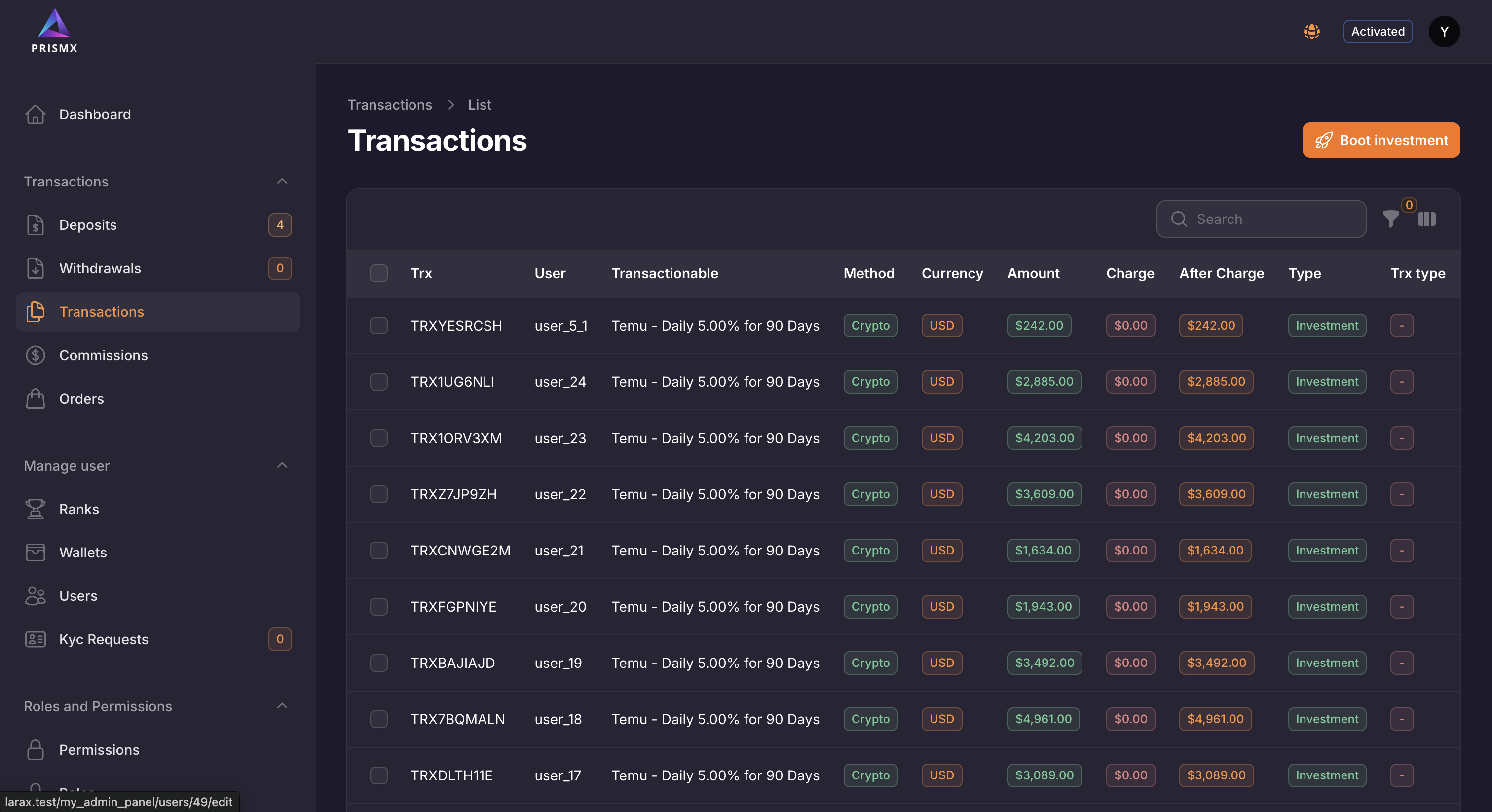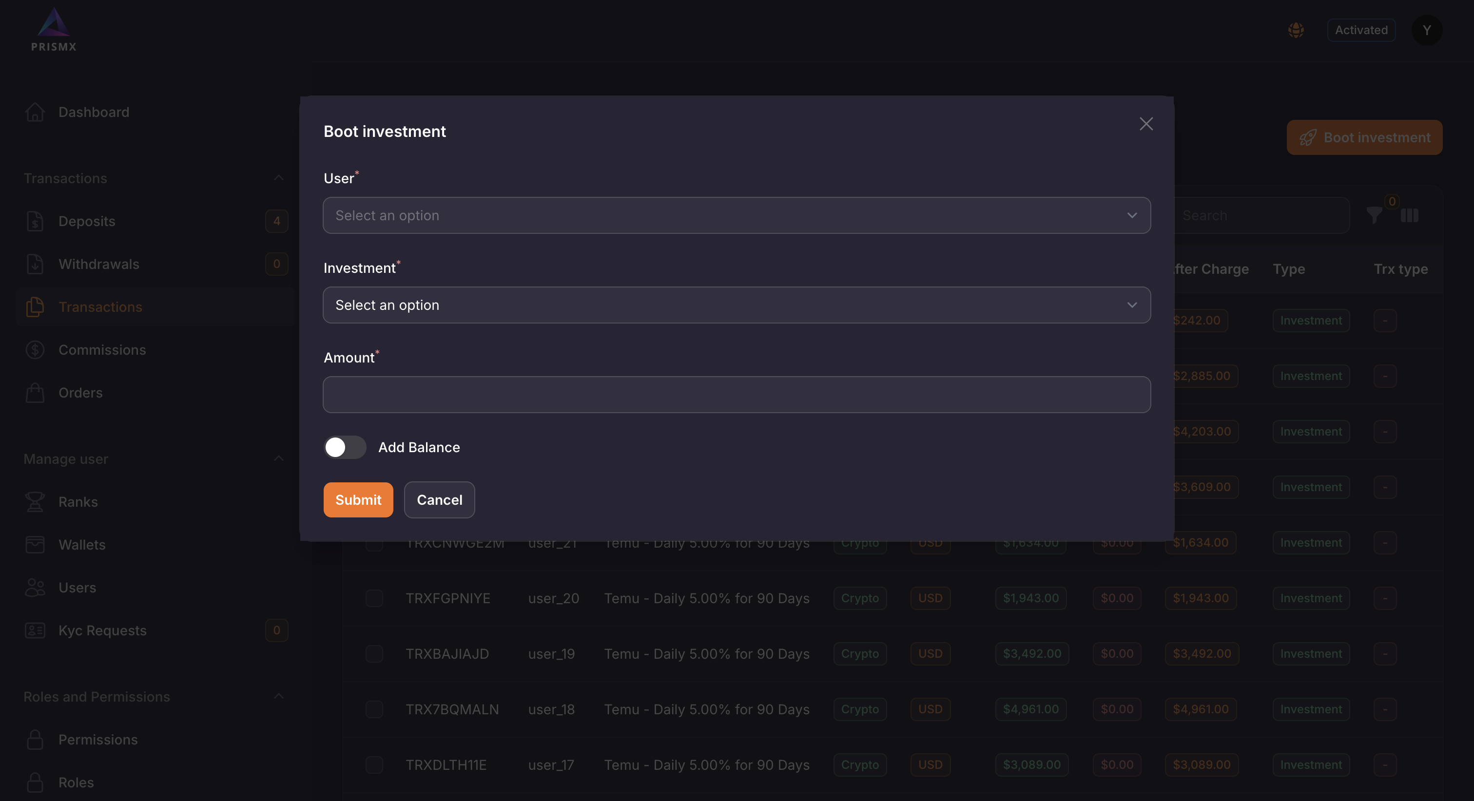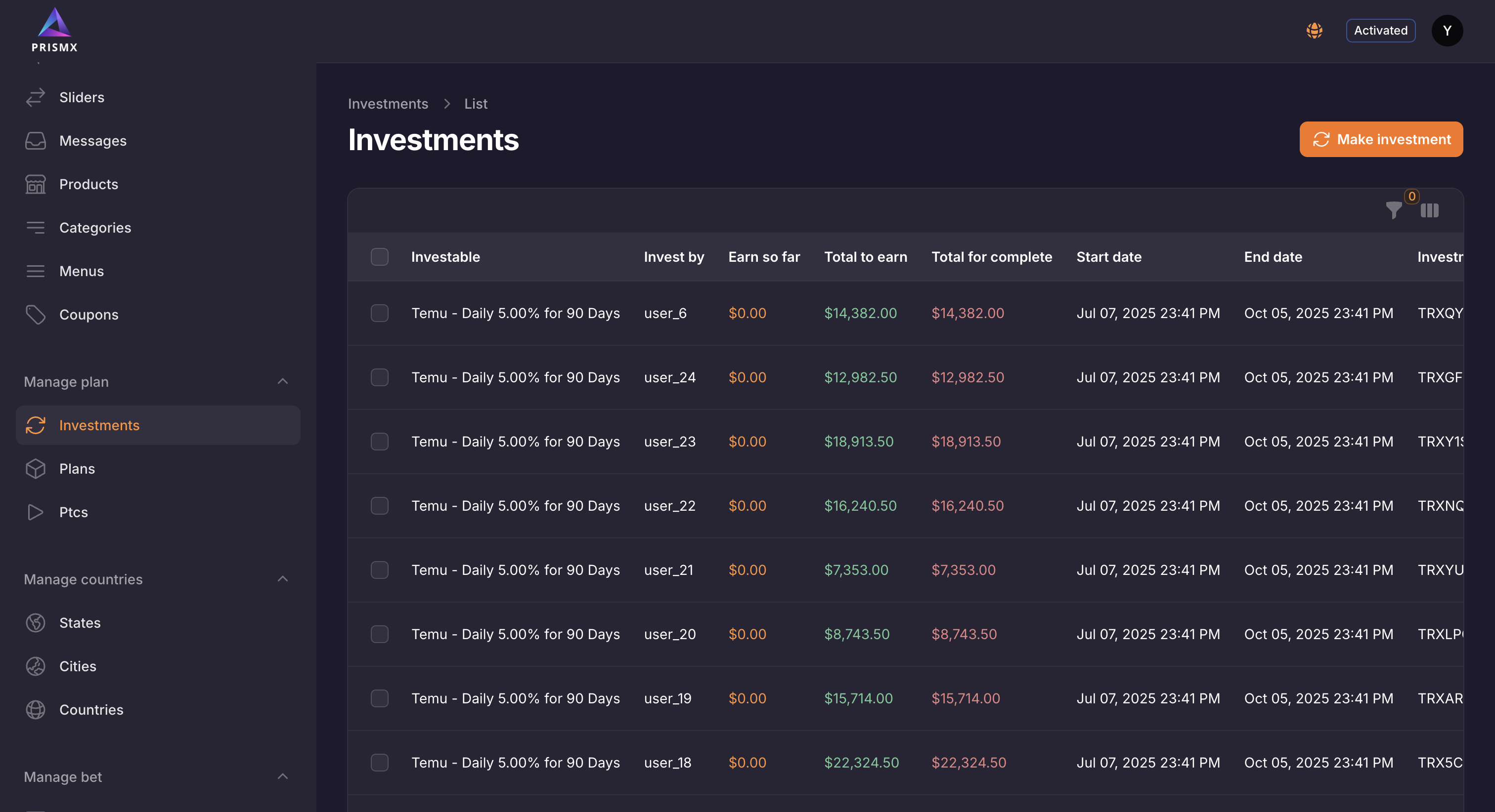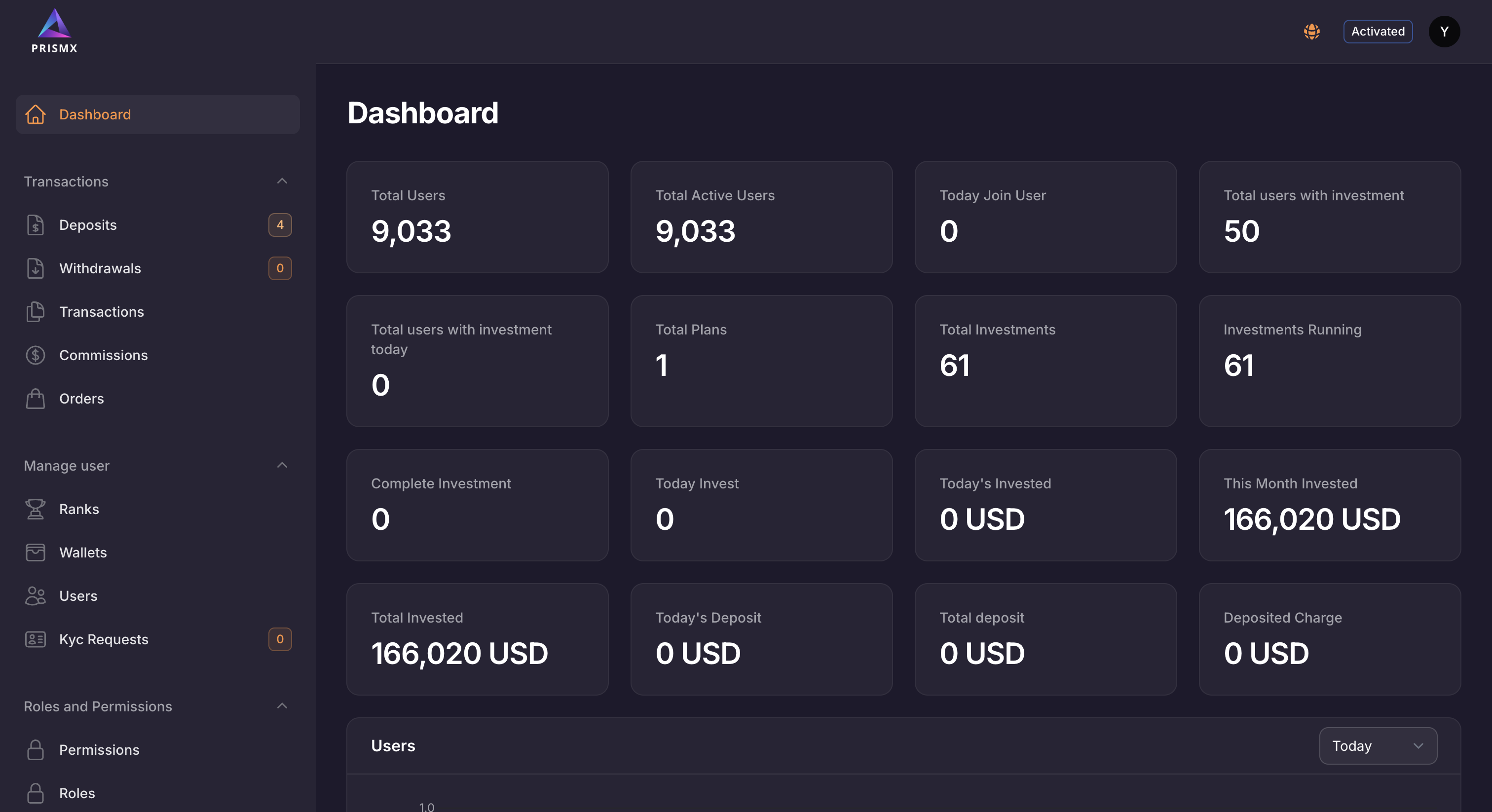 PrismX automatiza y simplifica las operaciones críticas de tu plataforma HYIP, para que te enfoques en hacer crecer tu negocio.